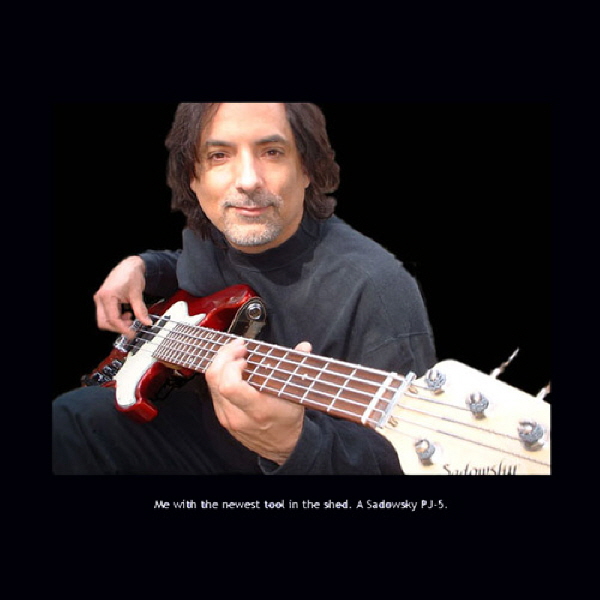 Me with the newest tool in the shed, my Sadowsky candy apple red PJ-5.